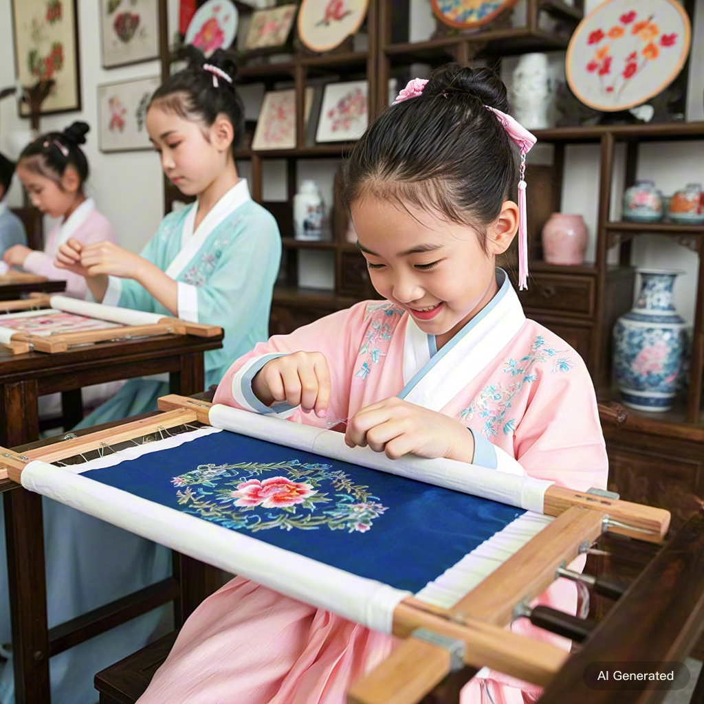 为孩子们开启一扇通往传统文化的大门!在趣味互动体验中,小小传承人将亲手触摸丝线,了解纹样寓意,在非遗传承人指导下绣出“人生第一针”,播撒下热爱与传承的种子。
