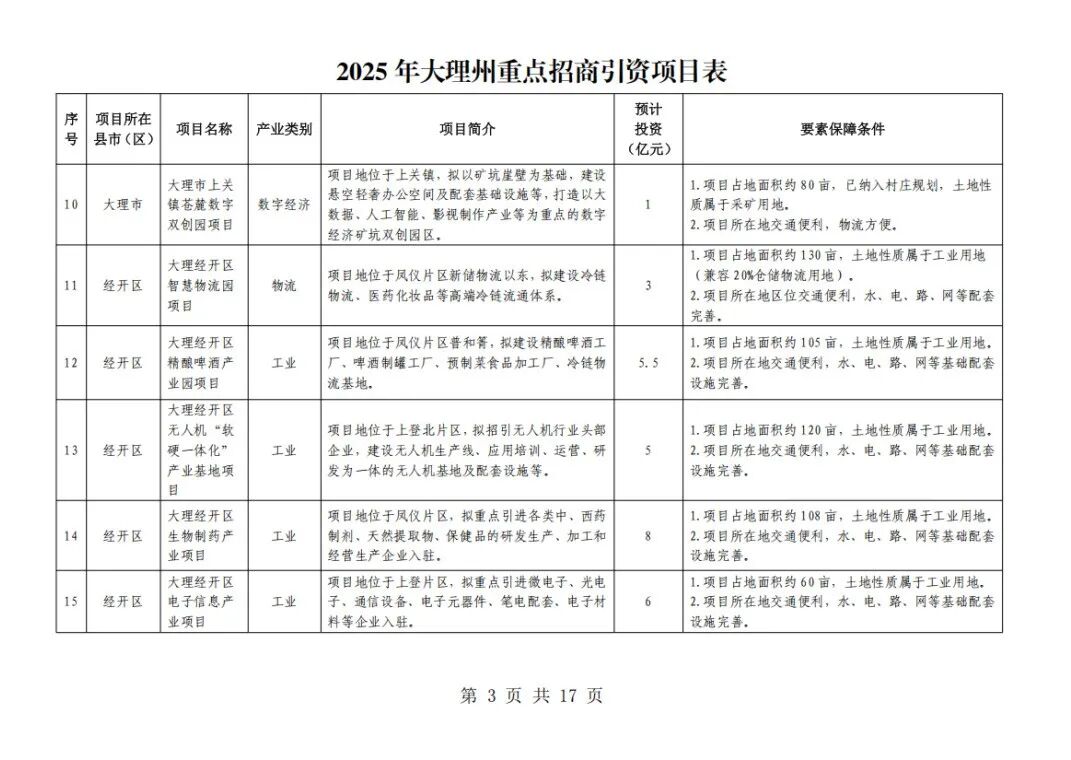 为进一步加大招商引资工作力度,以高质量招商引资项目建设促进全州经济社会高质量发展,州投资促进局联合相关县市(区),“以符合产业发展规划、已具备可供地块”为原则,精心策划储备了75个州级重点招商引资项目,储备项目土地、林地、环评等要素保障到位,涵盖文旅、工业、农业、现代物流、数字经济等重点产业,协议总投资306亿元。