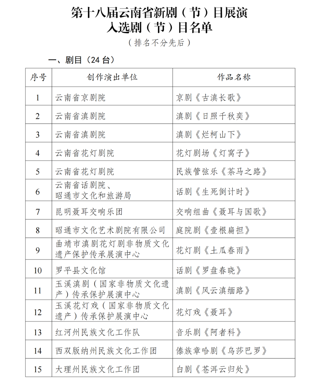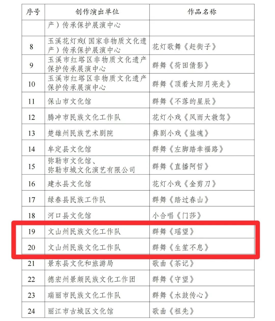 云南省文化和旅游厅日前公示第十八届云南省新剧(节)目展演入选剧(节)目名单。文山州民族文化工作队创作演出的《瑶望》和《生笙不息》名列其中。