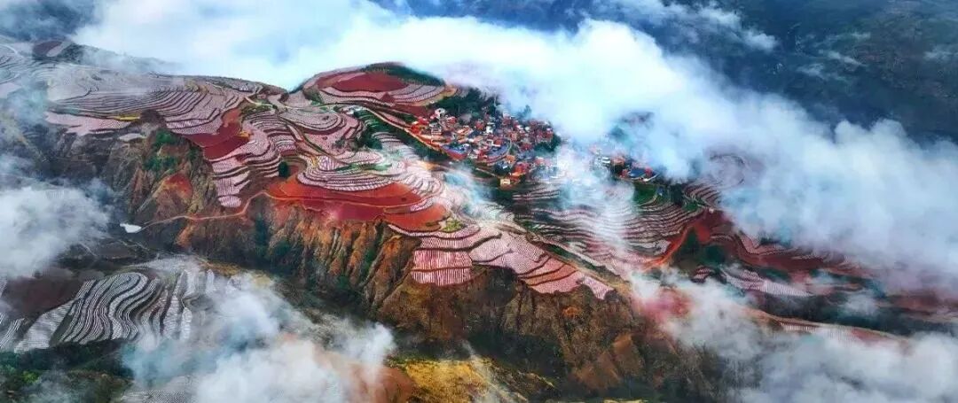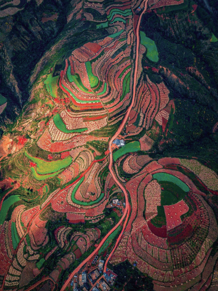 点位详解:东川红土地因其土壤富含氧化铁和铝元素而呈现赤红色,加之梯田式的耕作,形成了五彩斑斓的色块,被誉为“调色盘”。