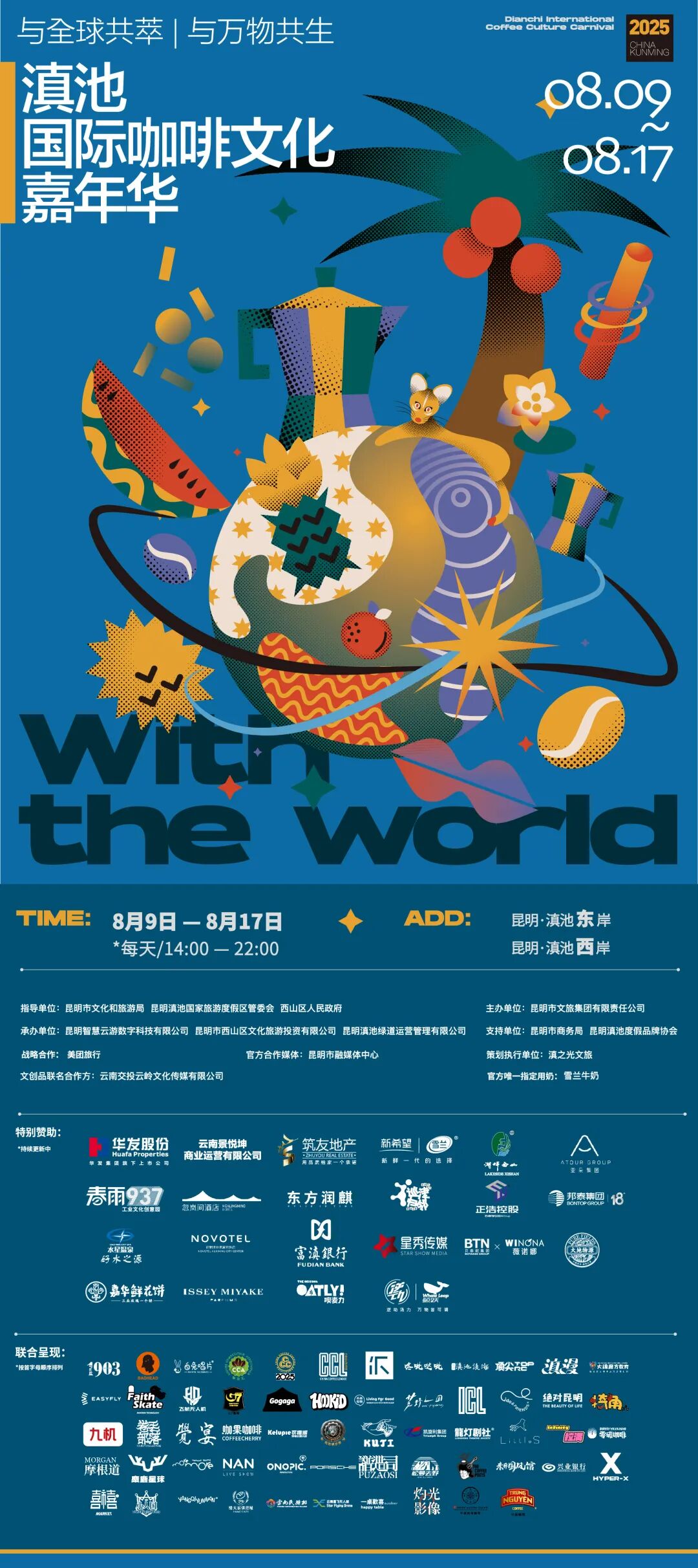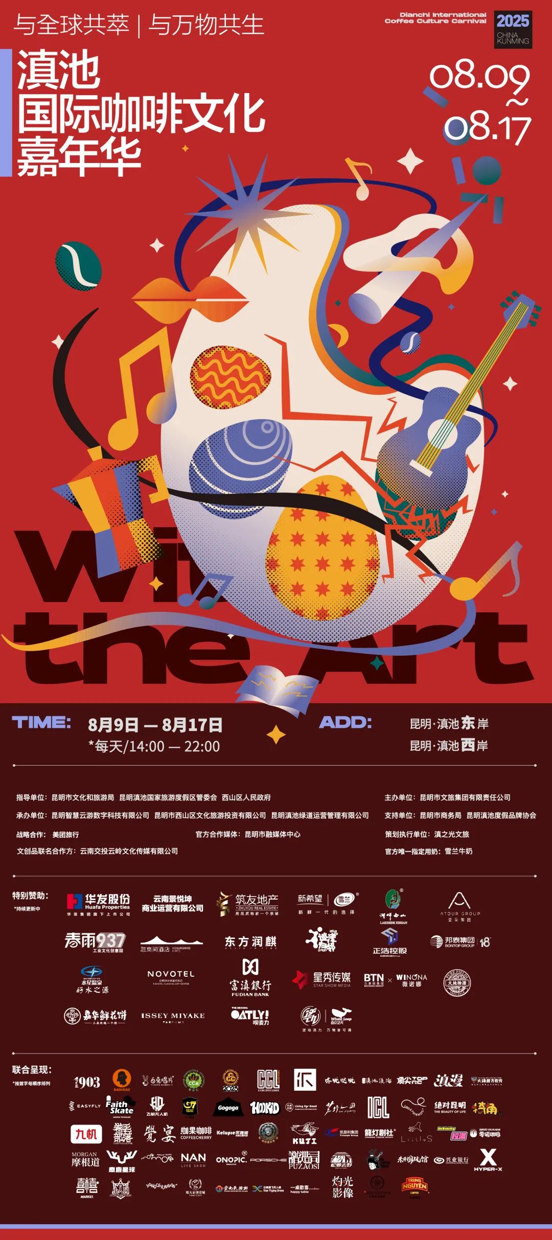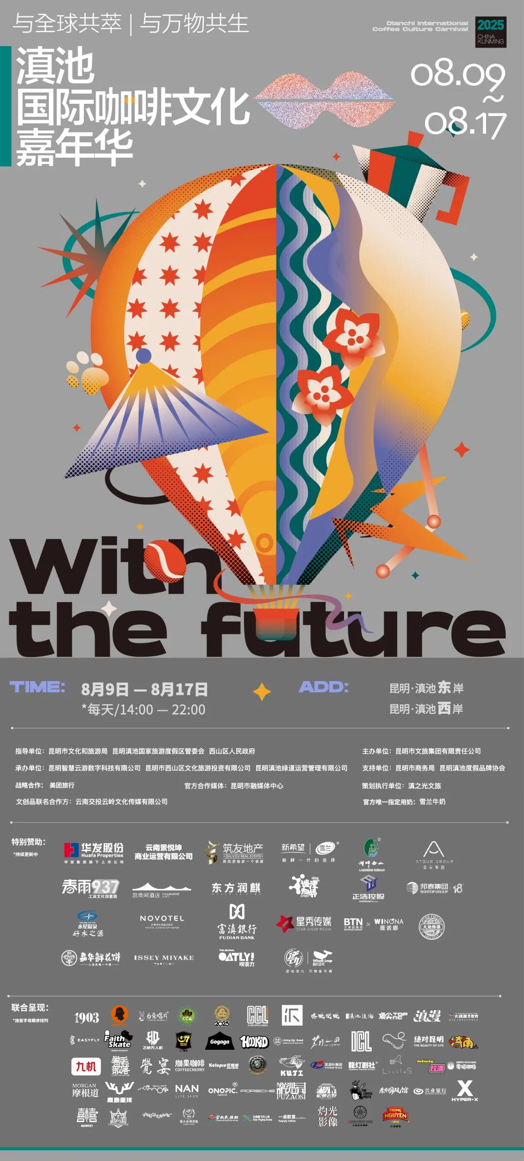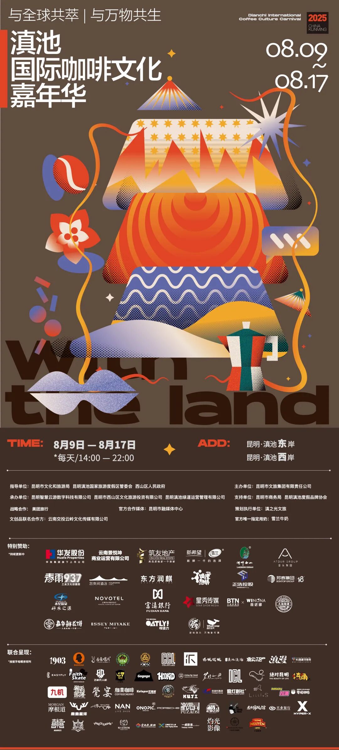 8月9日,“与全球共萃,与万物共生”——2025年滇池国际咖啡文化嘉年华将盛大启幕,这场跨越滇池东西两岸的咖啡盛宴,创新打造了“与世界”“与艺术”“与土地”“与生活”“与未来”五大限定体验,让咖啡文化在山水之间碰撞出奇妙火花。历时9天的狂欢,集结了东西两岸20多个特色活动、80多场演出,从醇香咖啡的品鉴交流到多元文化的融合演绎,从日间的惬意体验到夜晚的活力狂欢,将全方位满足你的期待。