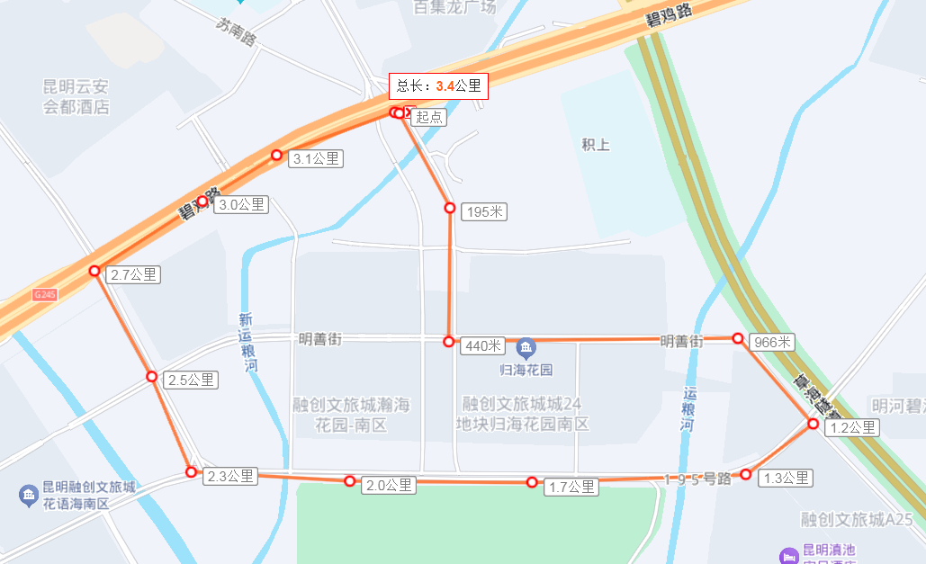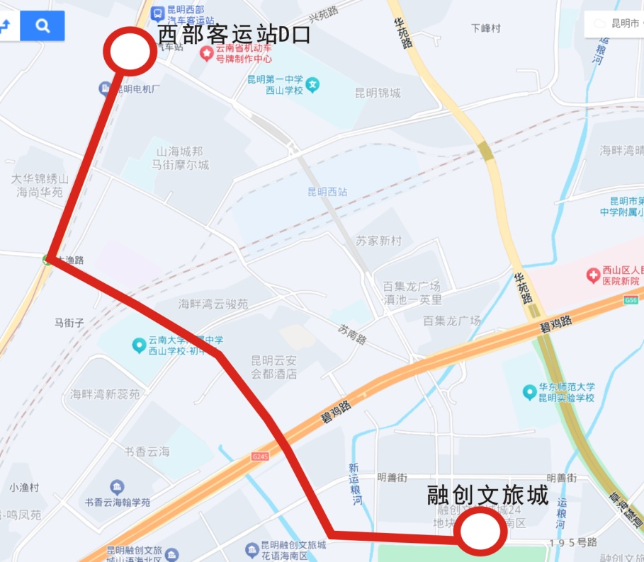 路线:起于滇池东岸主会场(草海隧道东口),止于融创文旅城,运行里程约18.2公里。