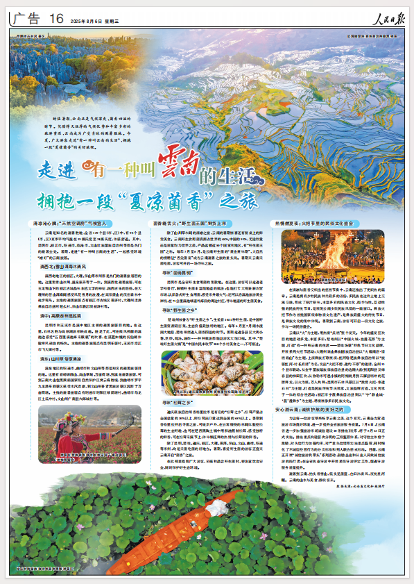 昆明、玉溪、曲靖……《人民日报》整版推介到云南拥抱一段“夏凉菌香”之旅