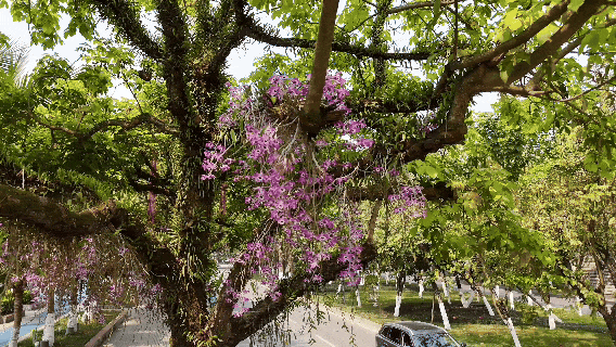 滨河路是河口县的主干道,与其他城市主干道不同,这条路不仅有着交通通行的功能,更是备受当地人和游客青睐的休闲游玩场所。滨河路旁种植着亚热带地区特有的景观树,沿街花台上一年四季都有各式各样的花朵竞相绽放。路边的中式建筑与河对岸的越南法式建筑形成鲜明对比,一条路可尽览两国风情。这条路也是河口推进“绿美城市”建设、实施城市更新的成果之一。目前,河口的森林覆盖率达53.39%,人均公园绿地面积23.92平方米。