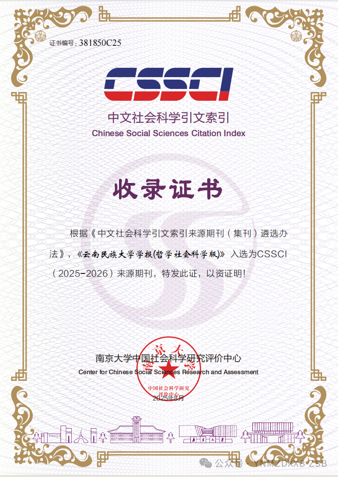 近日,经南京大学中国社会科学研究评价中心根据《中国社会科学引文索引来源期刊(集刊)遴选办法》评定,《云南民族大学学报(哲学社会科学版)》入选为CSSCI(2025—2026)来源期刊。