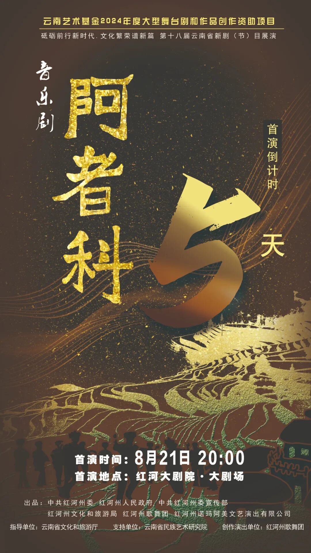 8月21日,红河州原创音乐剧《阿者科》将在云南红河大剧院进行首演。