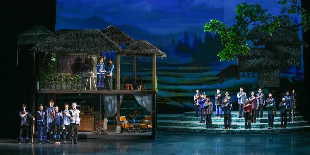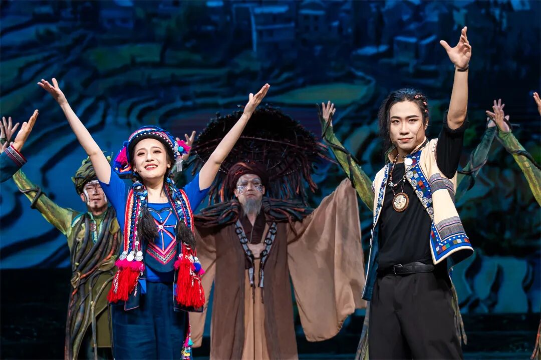 音乐剧《阿者科》深情演绎了哈尼人这场关乎家园存续的重大抉择,以及他们为保护人类文化遗产所作出的无私奉献。哈尼梯田昭示着哈尼人“敬畏自然、万物有灵、天人合一”的古老智慧,它不仅是一幅徐徐展开的“绿水青山”的壮丽画卷,更是这个民族在时代浪潮中践行习近平生态文明思想,守护灵魂家园、拥抱美好未来的动人故事。