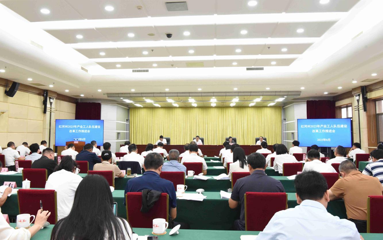 8月18日,红河州召开2025年产业工人队伍建设改革工作推进会。中共红河州委副书记、红河州委宣传部部长应亥宗出席会议并讲话,红河州政协副主席、红河州总工会主席张艳梅通报2023年以来红河州产改工作情况并主持会议。中共红河州委副秘书长文颢竣,红河州总工会党组书记、常务副主席姜云,红河州产改联席会议领导小组成员,各县市委副书记、县市总工会主席和常务副主席,以及州直机关工会、红河发展集团工会等相关工会负责同志参加会议。