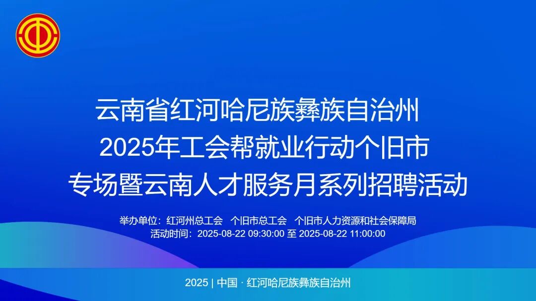 云南省红河哈尼族彝族自治州2025年工会帮就业行动系列招聘活动个旧市专场