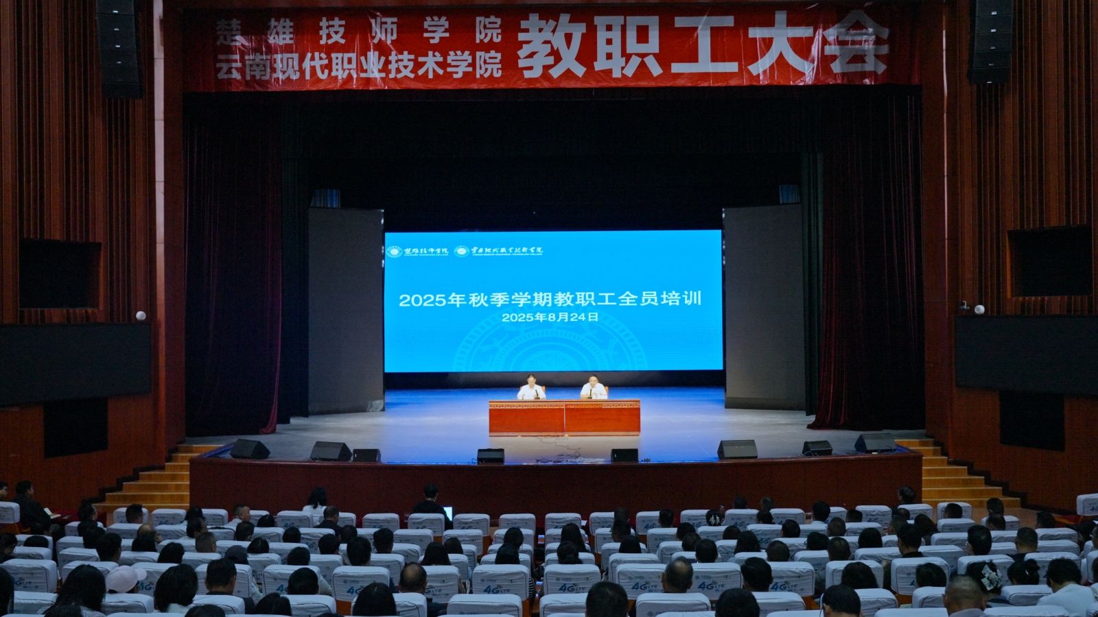 为深入贯彻落实职业教育改革精神,全面提升教职工履职能力,深化“楚技之光”品牌建设,全面推进“五个强校”战略,8月24日至25日,云南楚雄技师学院 云南现代职业技术学院开展了2025年秋季学期教职工全员培训会。学院党委书记王若舟作开班动员讲话,党委副书记、院长周刚主持并作总结讲话,全体教职工参加培训。