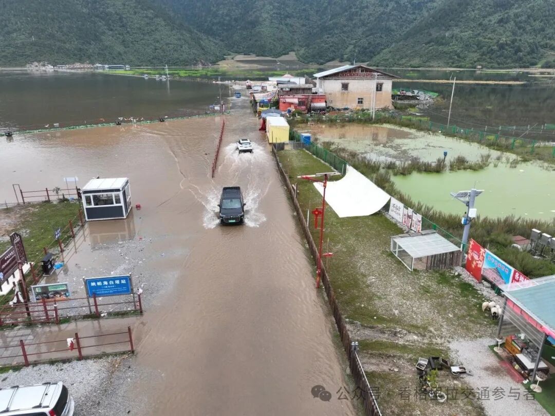 景色虽美,但迪庆交警部门提醒,纳帕海环湖路段属于低等级公路,路面狭窄且无明显隔离设施,加之近期降雨频繁,路面湿滑,部分区域积水深度可达10-20厘米,水下可能存在坑洼、碎石或暗沟,车辆通行时易出现打滑、失控等风险。同时,水面强光反射会严重干扰驾驶员视线,极易引发侧翻等交通事故。
