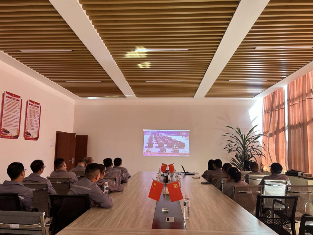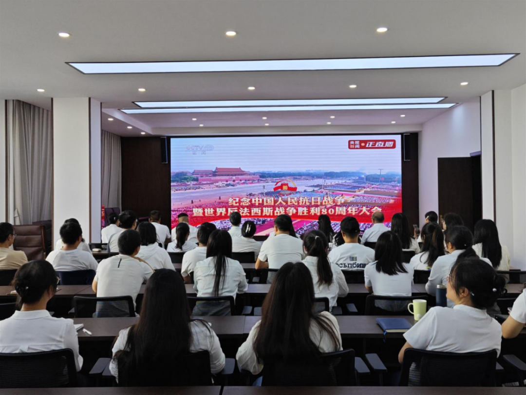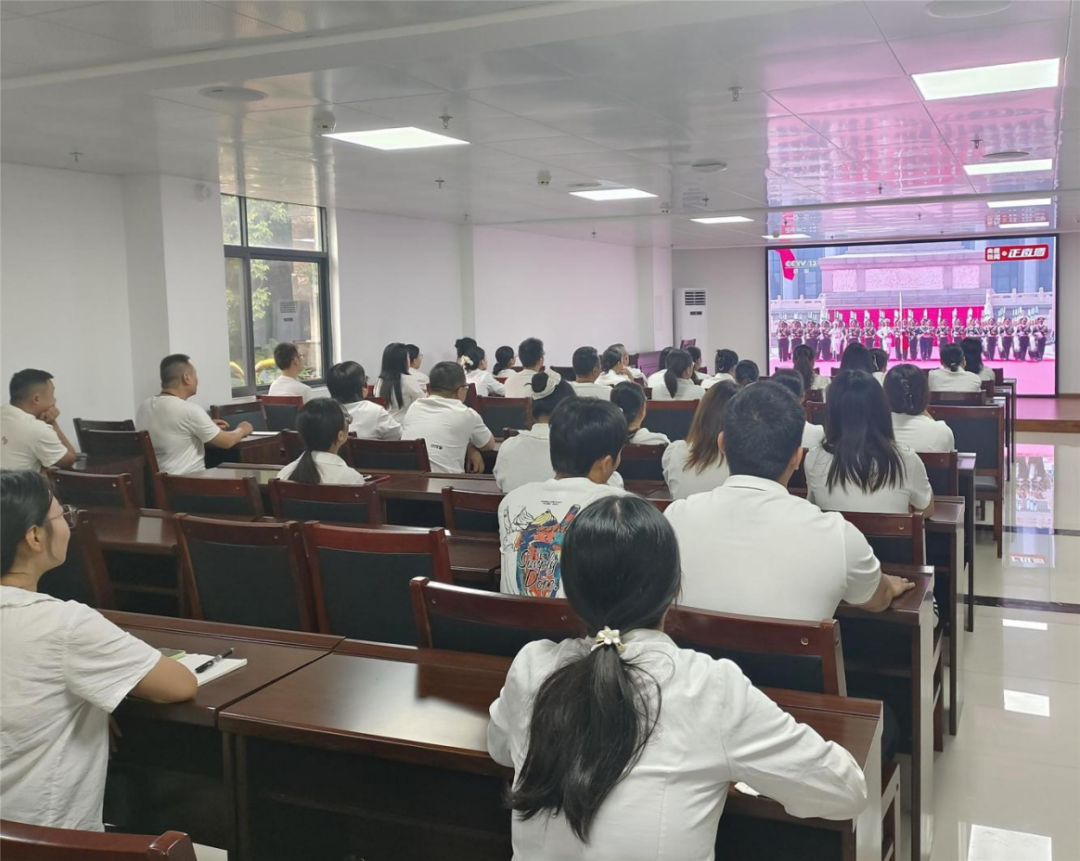 ▲红河产业投资集团有限公司工会组织干部职工观看纪念中国人民抗日战争暨世界反法西斯战争胜利80周年大会直播