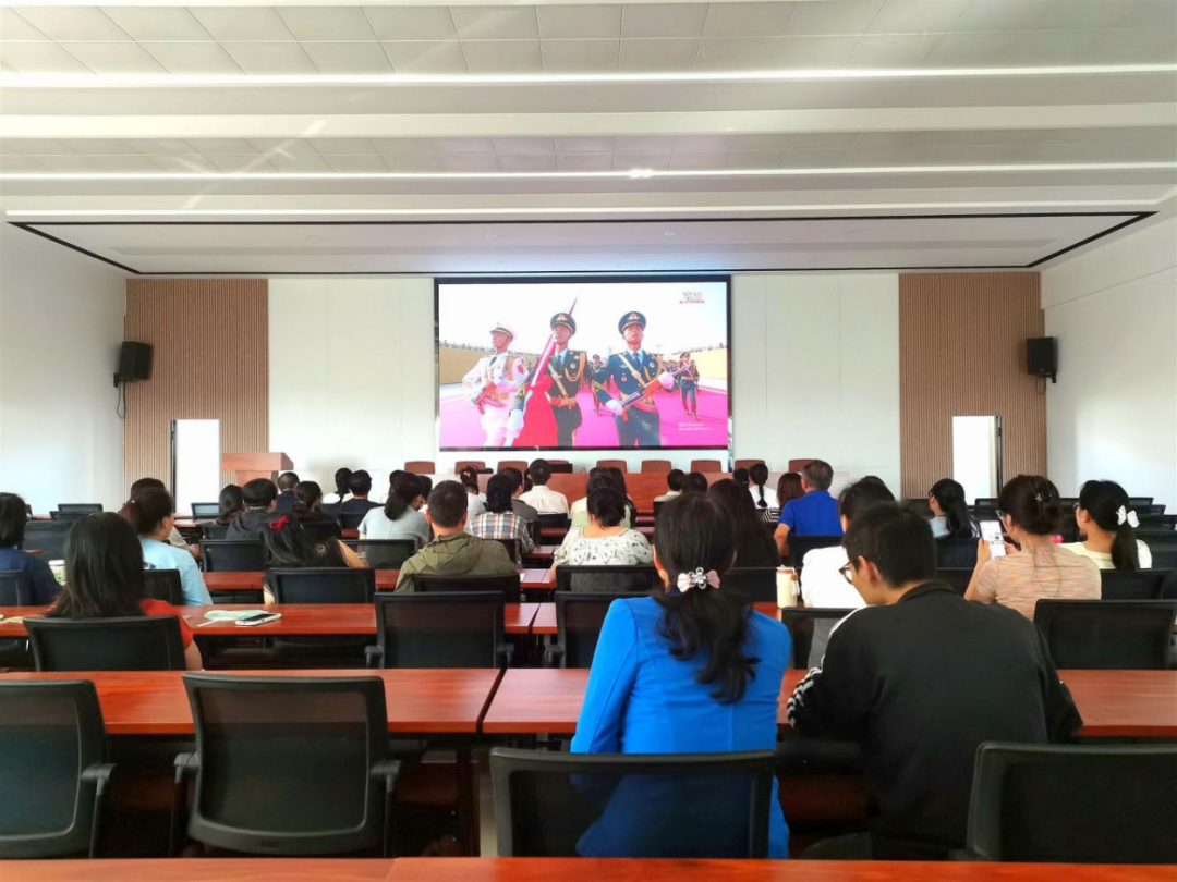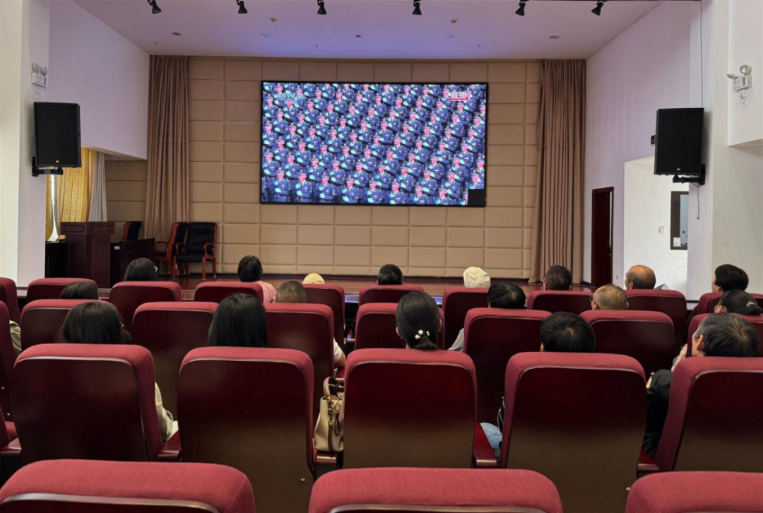 ▲蒙自市群团“联盟”党建办组织各成员单位50余名干部职工集中观看纪念中国人民抗日战争暨世界反法西斯战争胜利80周年大会直播