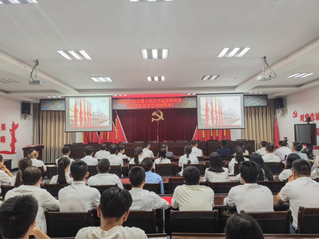 ▲金平县群团联盟集中观看纪念中国人民抗日战争暨世界反法西斯战争胜利80周年大会直播