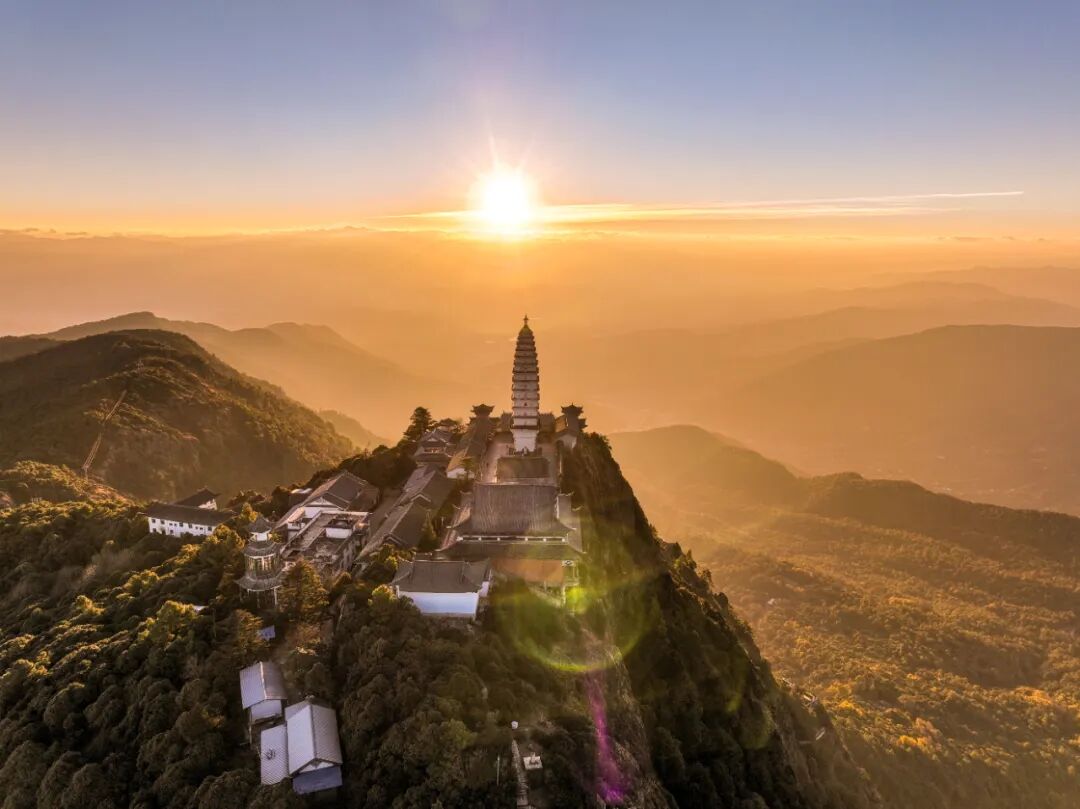 金顶寺:海拔3248米,清晨云海与日出堪称一绝。在这里可以东观日出、南观祥云、西观苍洱、北眺玉龙雪山,徐霞客曾誉之为“奇观尽收今古胜”。
