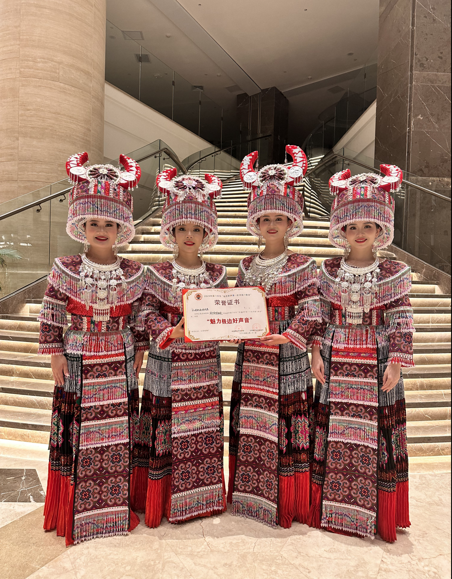 文山州选送的歌曲《苗岭花开幸福来》《山水相依》充分展现了文山独特的民族文化和地域特色,演员们的精湛技艺赢得了现场观众的热烈掌声和评委的一致好评。经过激烈角逐,《苗岭花开幸福来》荣获“魅力极边好声音”,《山水相依》荣获“优秀极边好声音”。同时,文山州组织申报的富宁县“壮族坡芽歌书国门文化新品牌”、麻栗坡县“军旅文化擦亮边境名片”及马关县“国门文化描绘边境新画卷”三个案例均被中国群众文化学会和省文化和旅游厅评选为“国门文化建设创新项目”。