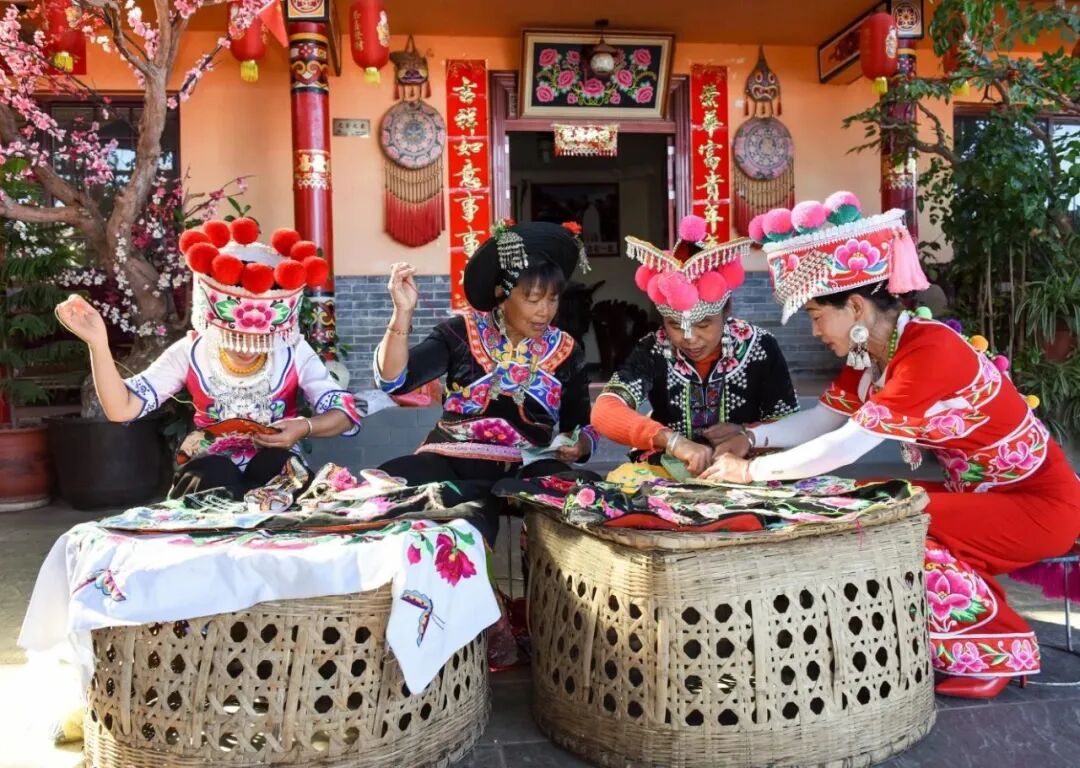 李晓丽正是在这个过程中,紧跟政策红利率先在家乡注册了自己的彝绣公司,在永仁县城“民族刺绣一条街”非遗集市开起刺绣店。“公司刚成立时,我们也时常面临融资、招工等各种困难。”李晓燕说,但随着楚雄州对彝绣产业越发重视、政策保障越发健全,她忐忑的心终于落下了。“特别是‘彝绣贷’、‘彝绣保’,让我们坚定了发展彝绣产业的信心。”