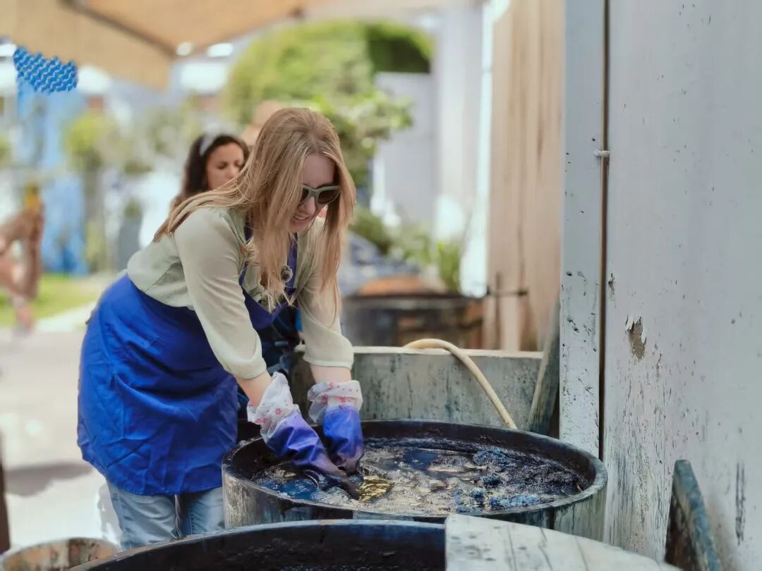 “这些蓝白纹样像把天空和云朵绣在了布上,太神奇了!从素白棉布到惊艳作品,整个过程就像在施展魔法。”在蓝续古法扎染体验店(喜洲田园店),一场热闹的白族扎染教学正拉开帷幕。