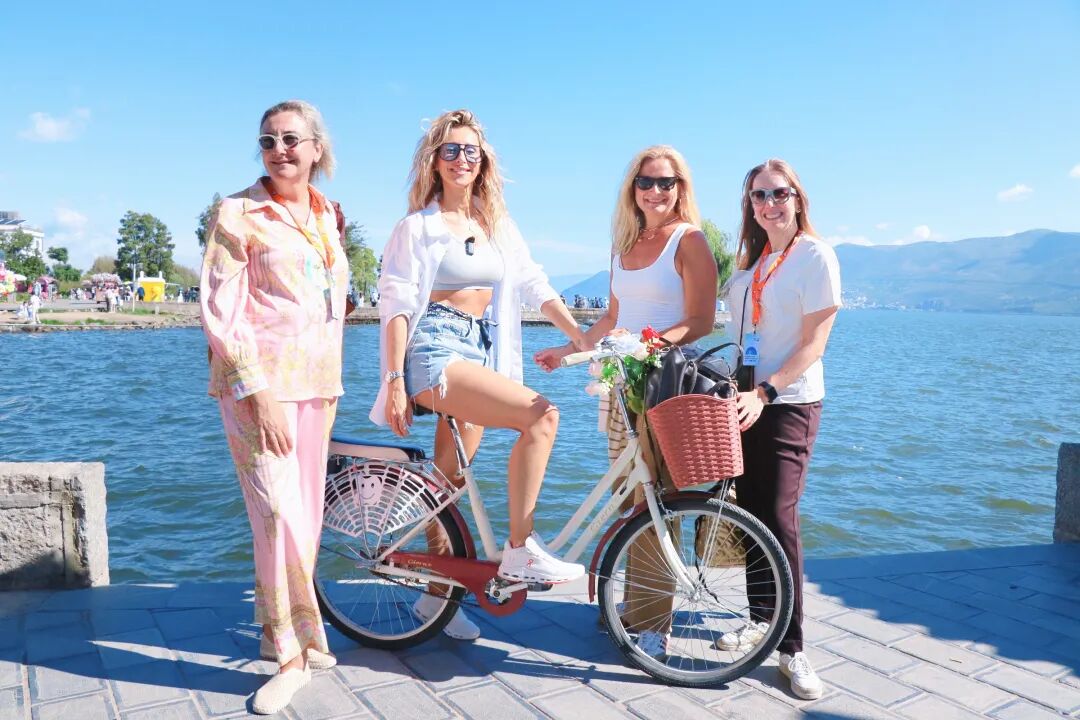达人们骑着自行车沿湖而行,海风拂过脸颊,带着青草与湖水的清新。来自英国的记者Rupert Parker说:“我40年前就来过大理,这里很安静、古朴,非常的美丽,今天来到这里,虽然感觉发生了很大的改变,但还是依然很美,我也非常喜欢大理。”