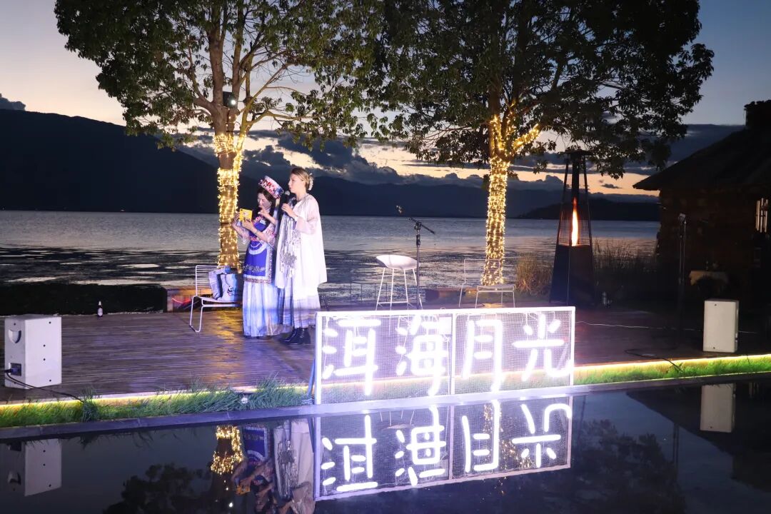 夕阳西下时,一场浪漫的露天音乐会正在洱海边上演。当地音乐人抱着吉他弹唱民谣,手鼓节奏轻快,歌声随着晚风飘向湖面。晚霞将天空染成橙红与粉紫,波光粼粼的洱海倒映着落日余晖,采访团成员们或坐在石阶上,或靠在栏杆边,静静聆听,或加入打跳的队伍里,感受大理风花雪月的浪漫。