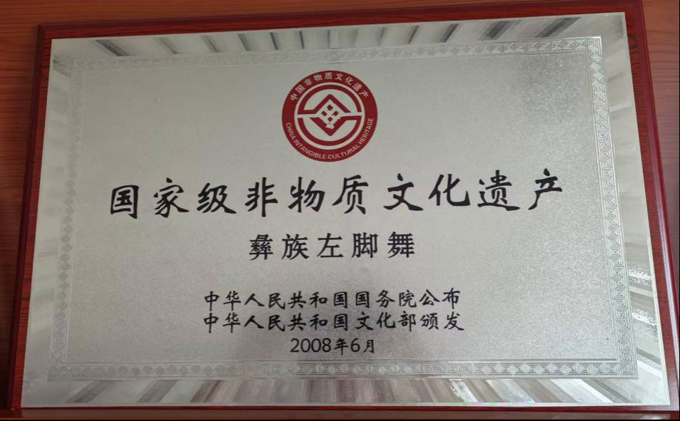 左脚舞,彝语称“咕遮”,古名“堕左脚”,是牟定县世居彝族传承千年的代表性舞种,被誉为彝族历史文化的“活化石”。舞蹈以“歌、舞、乐”三位一体为特色,节奏明快、通俗易懂,舞步中蕴含着彝族人民对天、地、日、月的原始崇拜,以及团结奋进、勇于创造的民族精神。2008年,“彝族左脚舞”被国务院批准列入第二批国家级非物质文化遗产名录,其文化价值得到国家级认可。
