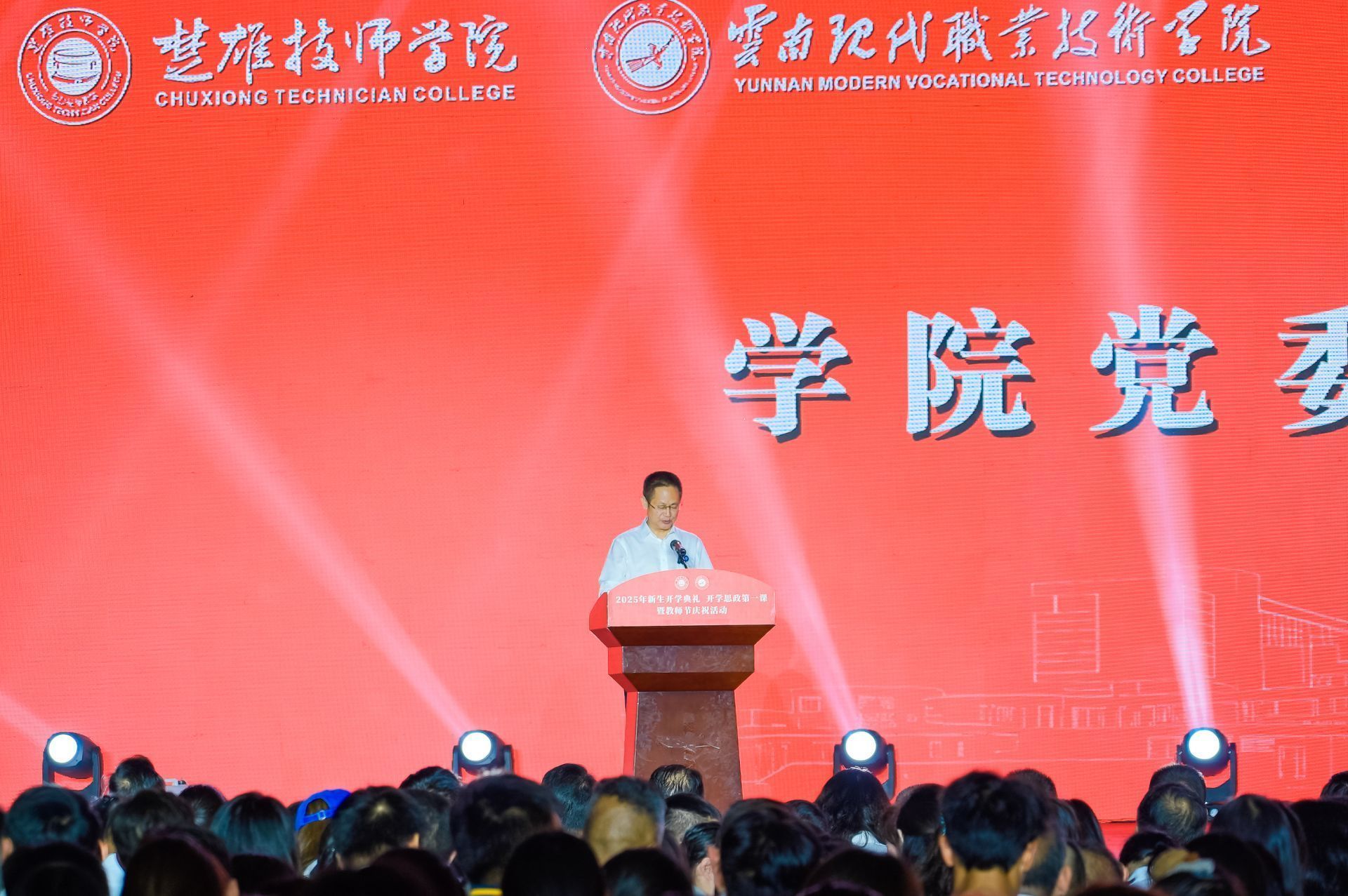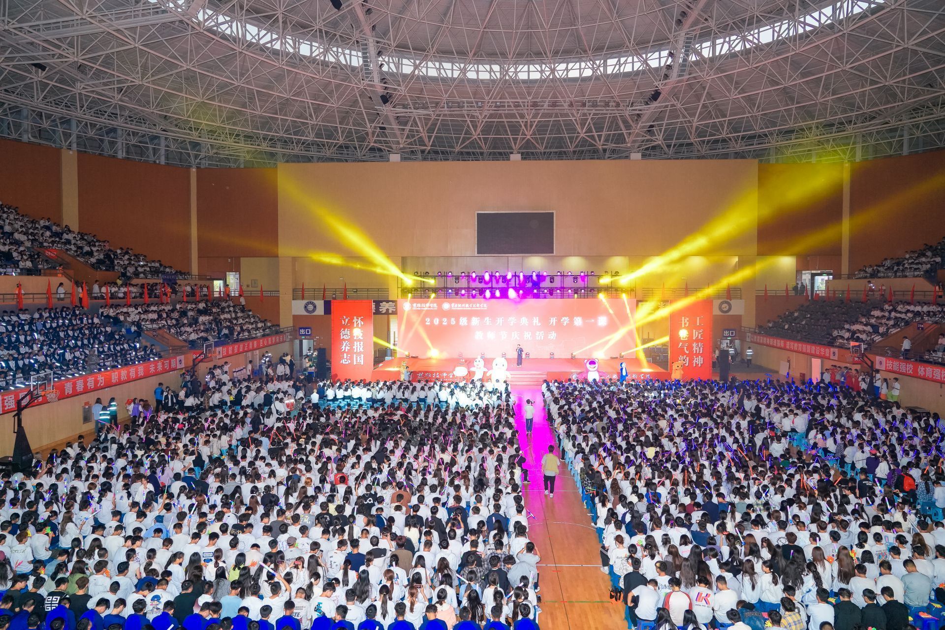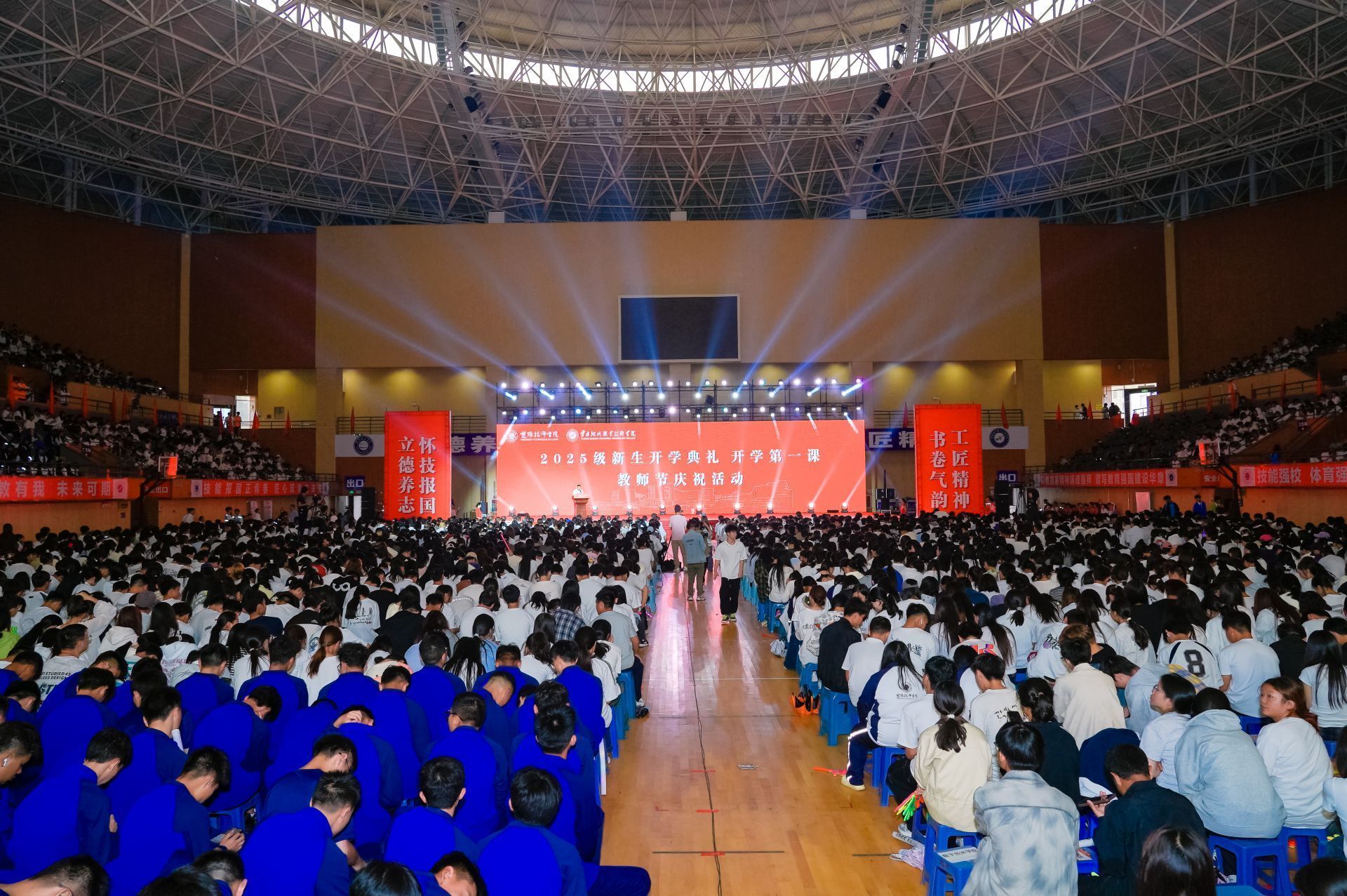 9月9日上午,2025级新生开学典礼 | 开学第一课暨教师节庆祝活动在楚雄技师学院 云南现代职业技术学院体育馆内举办,6000余名师生、嘉宾齐聚现场,活动还邀请了普艳喜、欧牧优诺、郭春柔、孟佳贤君、尹俊学院优秀校友,共同迎接新学期。活动分仪式阶段和表演阶段两大环节开展。