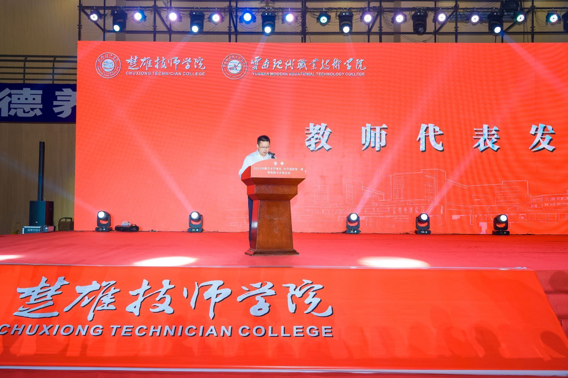 “从学院学生到一名教师,我始终记得技能傍身的初心。今后我会把竞赛经验、专业知识传授给学生,帮他们成为有技能、能当事的大国工匠。”教师代表吴家斌分享了自己的成长与教学经历。会上,他对新老师表达了要牢记育人使命、做学生引路人的期望,希望2025级新生专注当下、勇于实践,成为新时代青年,并呼吁师生携手以实干奋斗书写职教辉煌篇章。