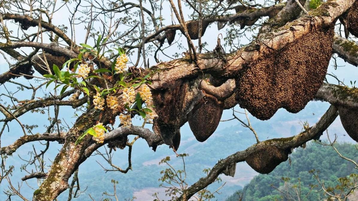 罗嘉《蜂王树上的球花石斛与马杈蜂》