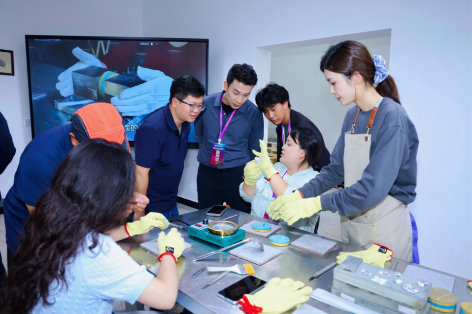 走进工艺美术学院,在沉浸式操作体验区,大V们纷纷化身“学徒”,不时发出惊叹,既感叹传统技艺的精妙,也体会到云锡工匠“毫厘之间见真章”的匠心精神。在锡工艺品制作体验区,大V体验了锡工艺品的浇注、打磨、抛光等制作流程;在内画制作体验区,大V手持细笔,在鼻烟壶内壁小心翼翼地勾勒图案,每一次下笔都显得格外专注,生怕破坏了这方寸之间的艺术美感。通过亲身体验,大V纷纷表示,这种沉浸式体验,让匠心不再是抽象的概念,而是可触摸、可感受的温度,将把这份体验和感悟通过自己的平台分享给更多人,让匠心精神在新时代绽放更加璀璨的光芒。