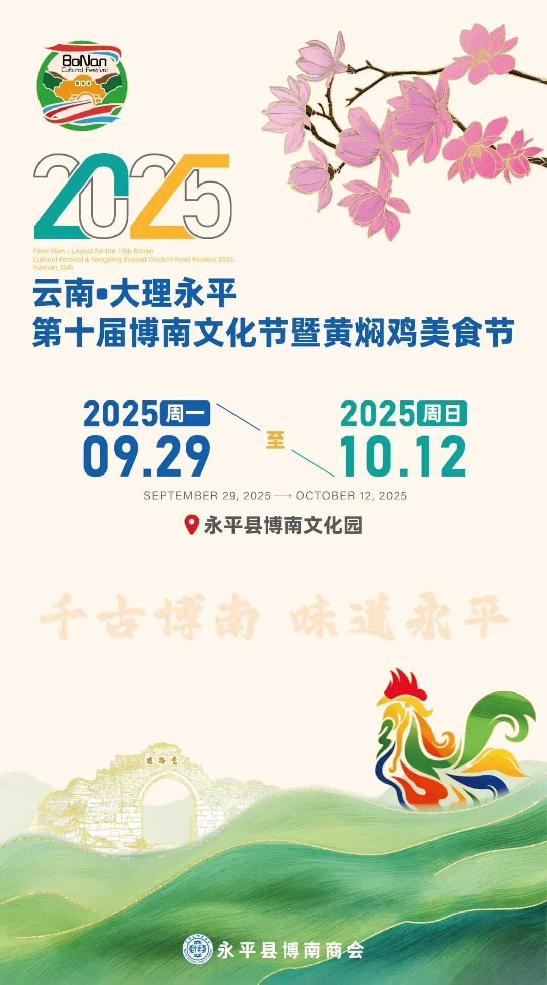 2025云南·大理永平第十届博南文化节暨黄焖鸡美食节的大幕即将拉开,我们在永平翘首以盼,期待与您相聚,共赏古韵风华,共品美食盛宴,共话文旅未来!