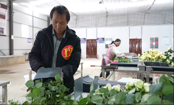 “搬得出,更要稳得住、能致富。”这是金沙社区各族群众的共同心愿。社区党总支牵头成立移民合作社,以“社区+企业+合作社+居民户”模式,盘活1190亩土地建成鲜切花种植基地,年产值达1000万元,每天带动200余人就业,户均增收2000余元。15户社员承租大棚种植鲜花,实现“土地有收益、在家能就业”。