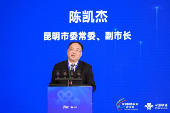 陈凯杰在致辞中表示,昆明始终将网络安全建设置于城市发展的突出位置,积极融入国家网络安全工作大局。昆明市愿在中央网信办的有力指导下,与中国联通等领军企业以及各界伙伴携手共进,在更高层次、更宽领域深化合作。他提出四点展望:第一,共同服务国家战略;第二,共同推动技术创新;第三,共同培育产业生态;第四,共同深化开放合作。
