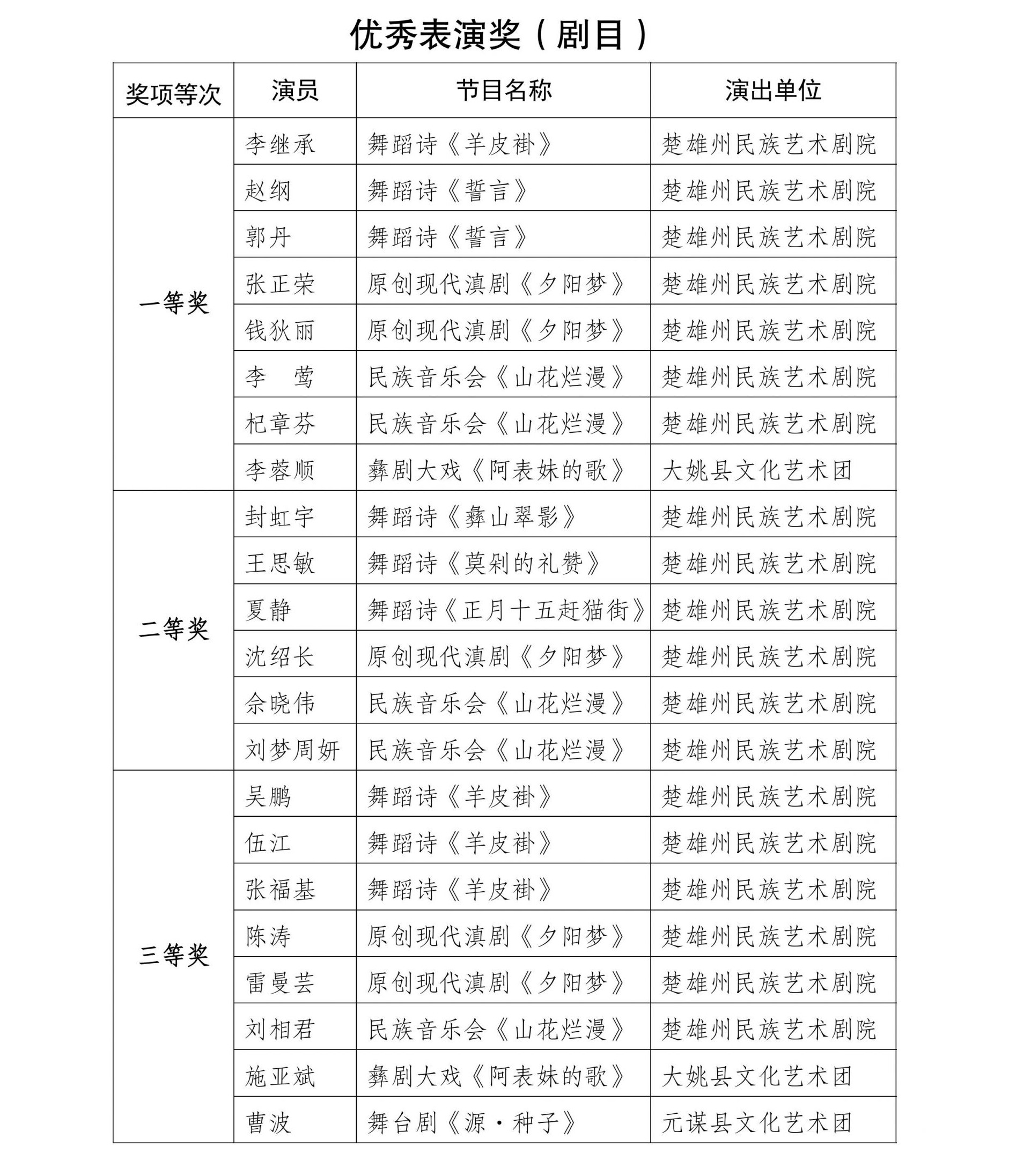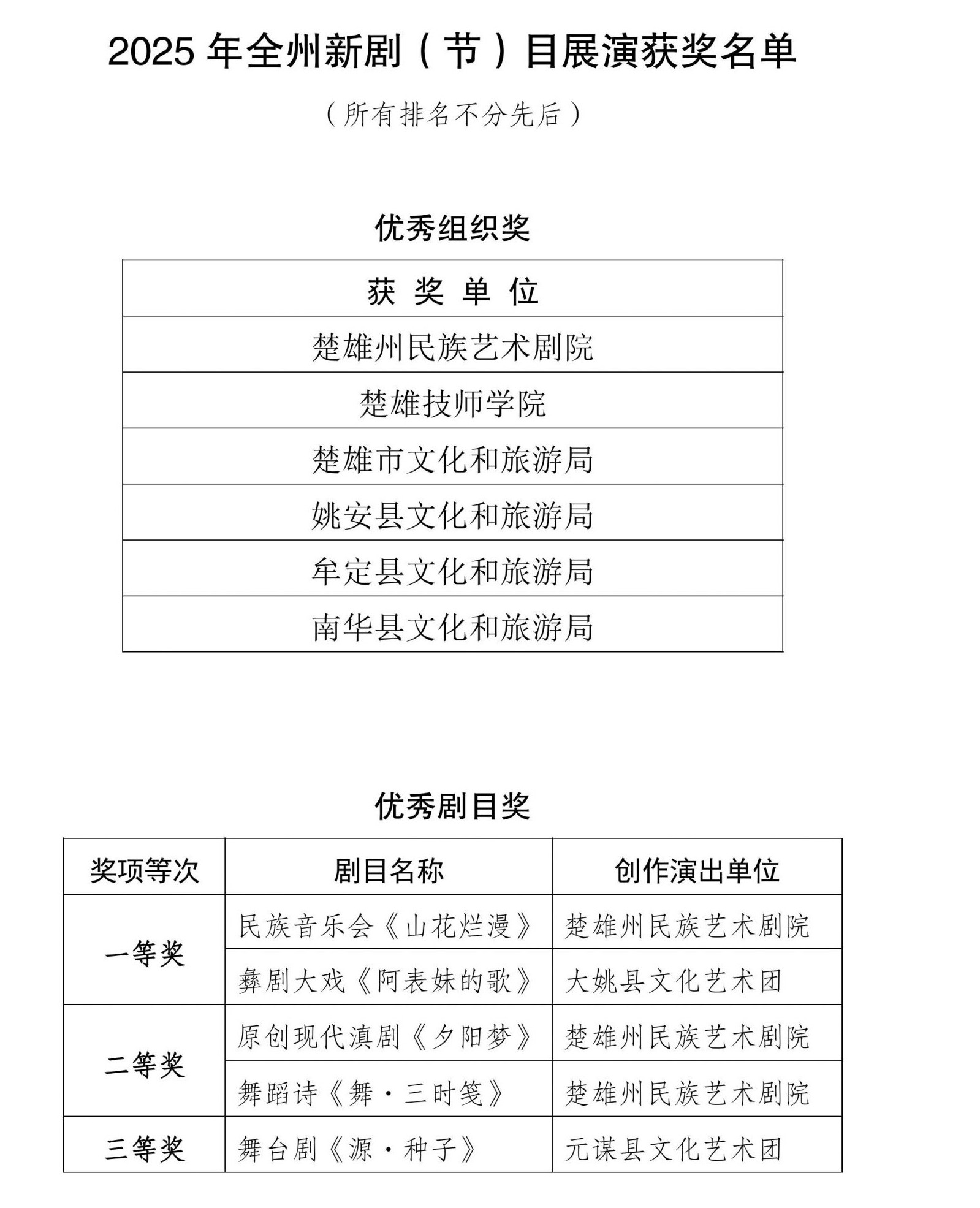 附件:2025年楚雄州新剧(节)目展演获奖名单
