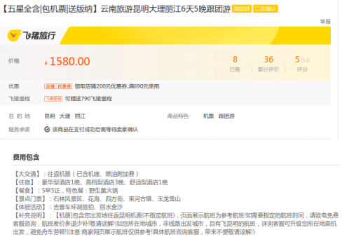 该旅游产品广告链接:【五星全含|包机票|送版纳】云南旅游昆明大理丽江6天5晚跟团游