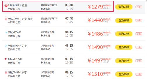 从行程看,北京至昆明出发时查询的往返机票价格最低为1279元。