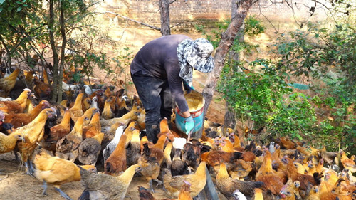 而在永仁县莲池乡莲池村委会凹弄山野,永仁玉苠妁勒土鸡养殖专业合作社被280亩的山林包围着,三五成群的土鸡在林间四处吃草、觅食。与传统圈养不同,林下放养的无量山高脚土鸡,具有皮色金黄、个体健硕、肌肉丰满、食用口感佳的特点。通过专业合作社,带动各乡镇农户养殖土鸡,依靠林下土鸡绿色品质和畅通的销售渠道,今年预计出栏6万只,可实现销售额500多万元,盈利50万元以上。永仁县玉苠妁勒土鸡养殖专业合作社社长起云明说:“我们合作社按照林中有禽的养殖模式,采取‘公司+农户’的发展模式,积极参与林下养殖试点示范,努力为群众增收作贡献。”