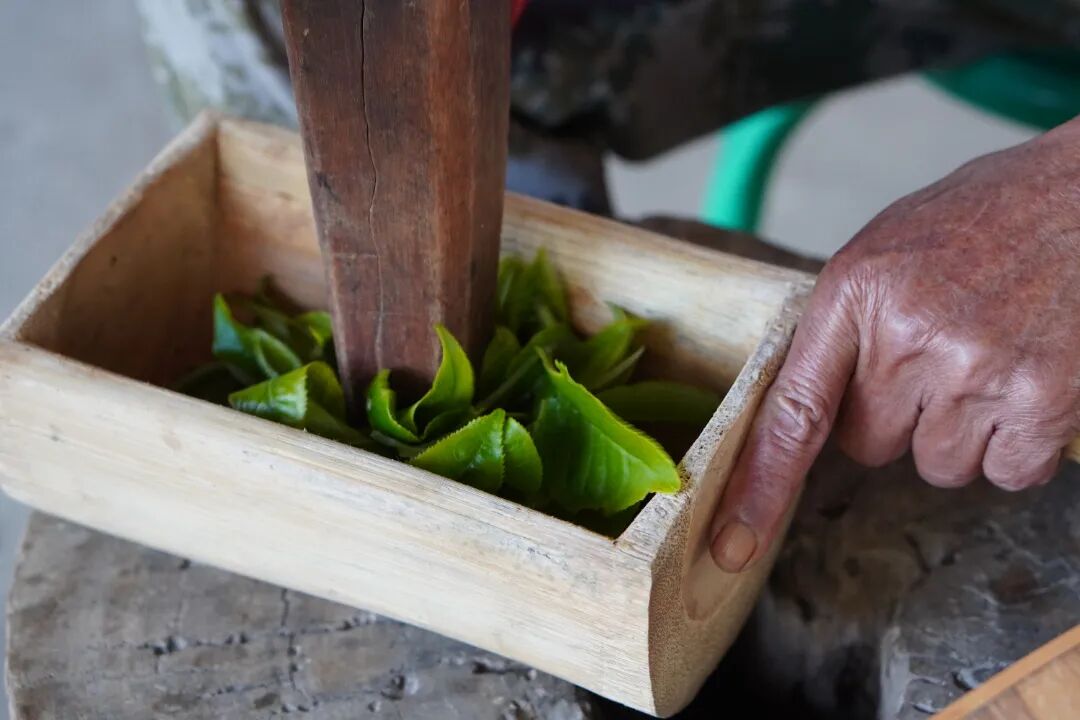 制作这道 “腊攸” 并不复杂,先将鲜嫩茶叶与大蒜、野八角、辣椒、食盐、柠檬叶、香叶等佐料香料一同舂碎,待食材交融出香气,再加入清水拌匀,一份充满基诺风情的凉拌茶便成了。入口时,凉拌茶先是清爽袭来,紧接着,独特的酸味与辣味在舌尖迸发,茶叶的清香又悄然萦绕其间。对爱尝鲜的茶客而言,这无疑是一场充满刺激的舌尖奇遇。