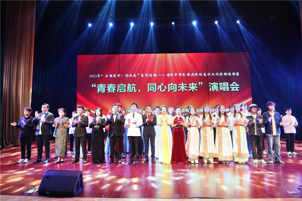 当晚,作为活动重要环节之一,“青春启航,同心向未来”演唱会在云南财经大学汇文礼堂举办。“大美河山——民族团结的乐章”“时代赞歌——团结奋进的旋律”“展望未来——共铸梦想的和声”三个篇章的精彩演出,通过一首首动人的歌曲,不仅为师生带来了一场精彩的视听盛宴,更让中华民族共同体意识深深扎根于师生心中,激励着青年学子以青春之我,携手同心,共筑美好未来。