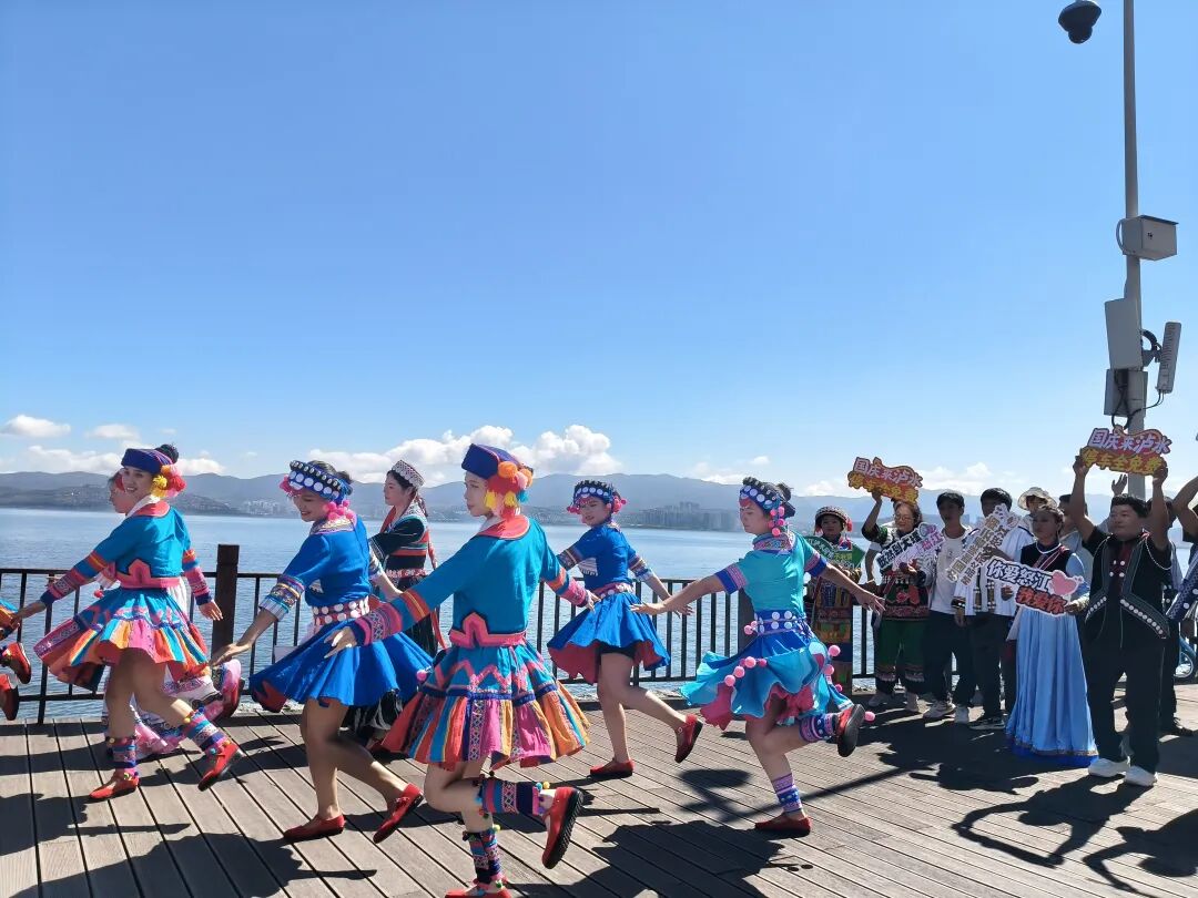 推介会在激情四射的舞蹈《舞动傈僳》中拉开序幕。伴随着欢快的旋律,身着绚丽民族服饰的傈僳族、白族小伙姑娘们跳起欢快的舞蹈。《户外天堂》《布汁欢歌》《六库》《四海皆朋友》《傈僳酒歌》《我在泸水很想你》等精彩歌舞表演轮番上演。舞姿优美灵动,悠扬歌声在洱海廊道回荡,让现场观众沉醉于怒江独特的民族风情,大家纷纷举着手机记录精彩瞬间,现场热闹非凡。