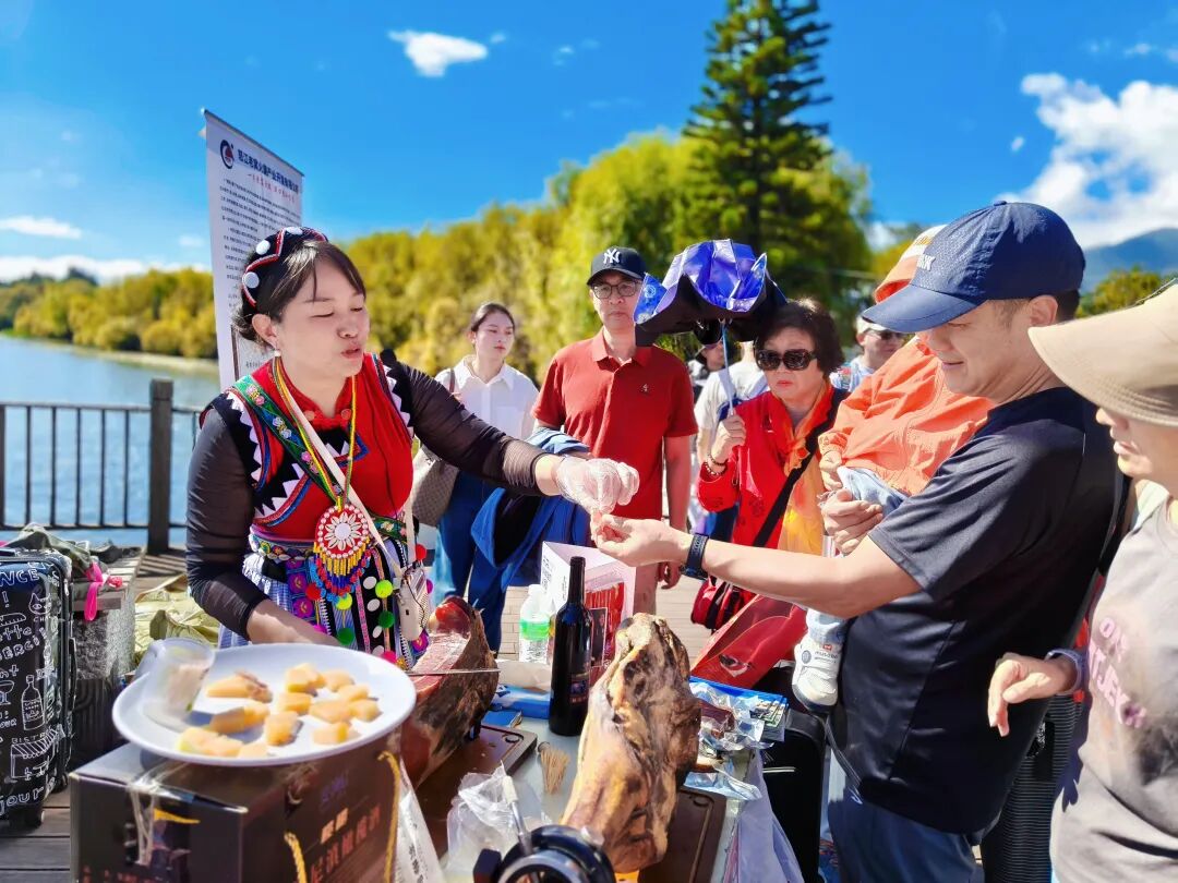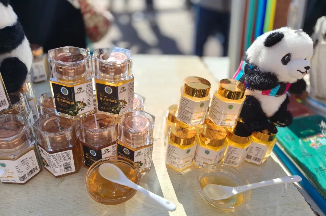活动现场的怒江特色产品体验区同样人气爆棚。清甜醇厚的怒江蜂蜜、香气扑鼻的精品咖啡、咸香浓郁的老窝火腿,多种风味在空气中交织;五彩斑斓的独龙毯及文创产品陈列其间,独龙族“织女”现场飞针走线,指尖翻飞的五彩丝线让千年非遗焕发生机,引得行人纷纷驻足品鉴、选购,近距离感受怒江好物的独特魅力。