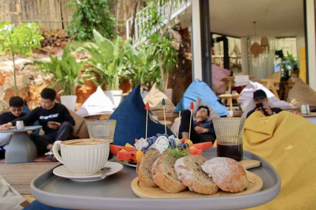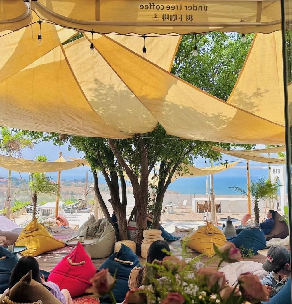 同样位于小湾村的树下咖啡,更显静谧文艺。其名来源于如伞盖般葱郁的大树,点一杯桂花拿铁或冰滴咖啡,倚在树荫下的懒人沙发里,听风过叶梢,看湖水轻漾。以树影与湖光为背景,画面中尽是森系与自然交织的宁静治愈,尤其适合午后小憩。