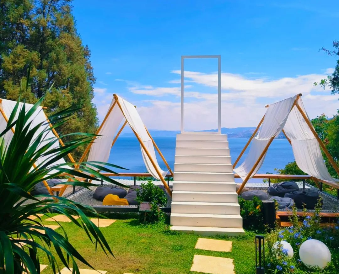 一抹蓝悬崖咖啡位于矣度村悬崖之上,视野极为开阔,是名副其实的网红打卡地,也是偷得浮生半日闲的绝佳去处。在这里,一杯咖啡、一块蛋糕、一本好书,搭配那一抹湛蓝的湖光,便足以沉醉整个下午。你还可以躺在观湖平台的懒人沙发上,沐微风、望白帆,于山海之间彻底放空自我。这里同时汇聚了美宿与美食,非常适合渴望远离喧嚣、深度放松的旅客。