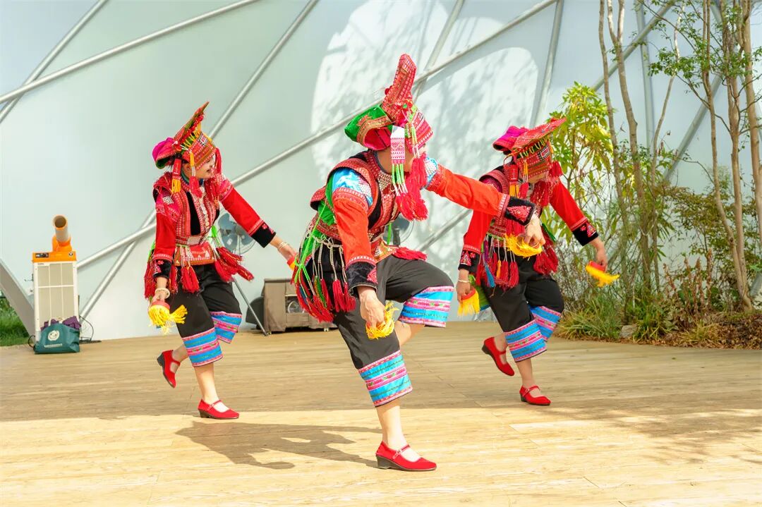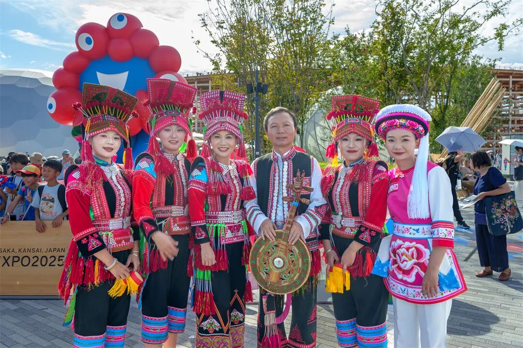 9月21日,红河州的民族歌舞在日本大阪世博会快闪舞台精彩上演,吸引了来自世界各国的300余名观众驻足欣赏,为世博会云南日活动增添了一抹绚丽的民族色彩。