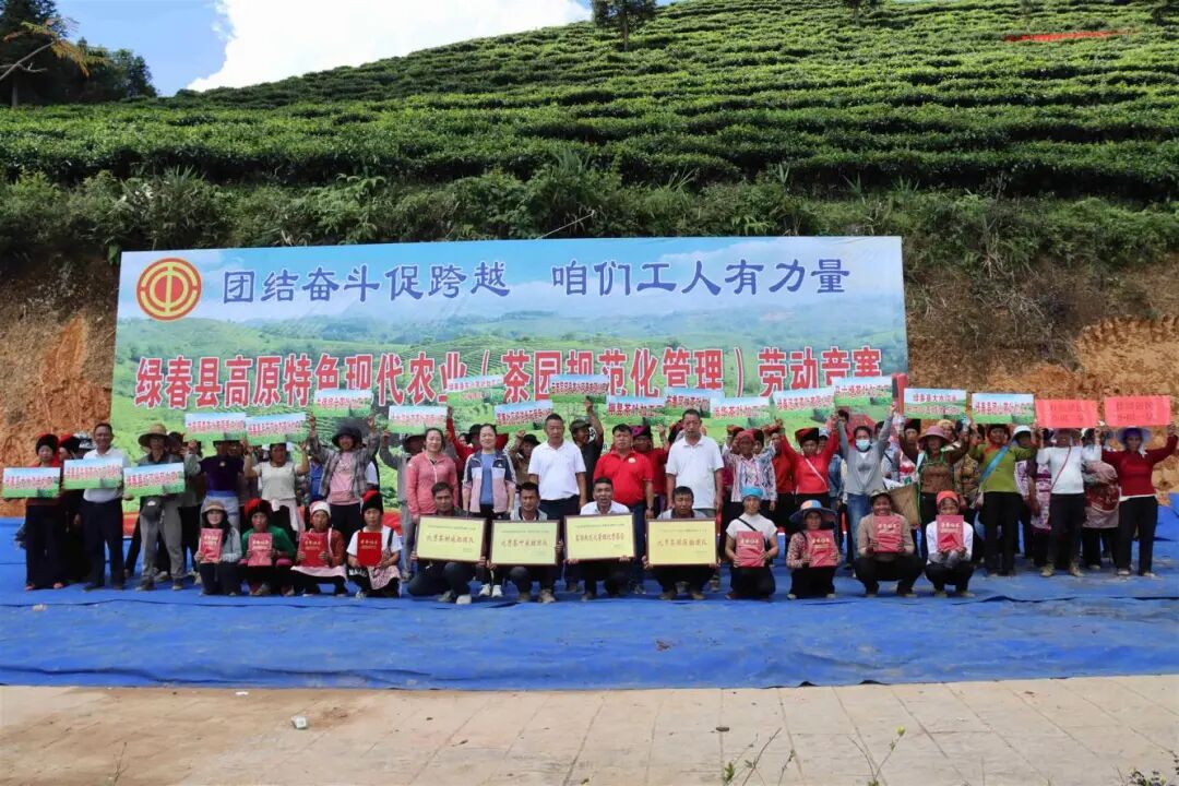 2025年4月至9月,绿春县总工会联合绿春县茶产业发展中心、绿春县茶产业工会委员会、大水沟乡政府及云南联民农业科技有限公司,以“团结奋斗促跨越 咱们工人有力量”为主题,成功举办高原特色现代农业劳动竞赛。竞赛聚焦茶园规范化管理和澳洲坚果规范化管理两大领域,通过技能培训、实操演练和现场比拼等形式,全面提升从业人员的专业素质和实践能力。