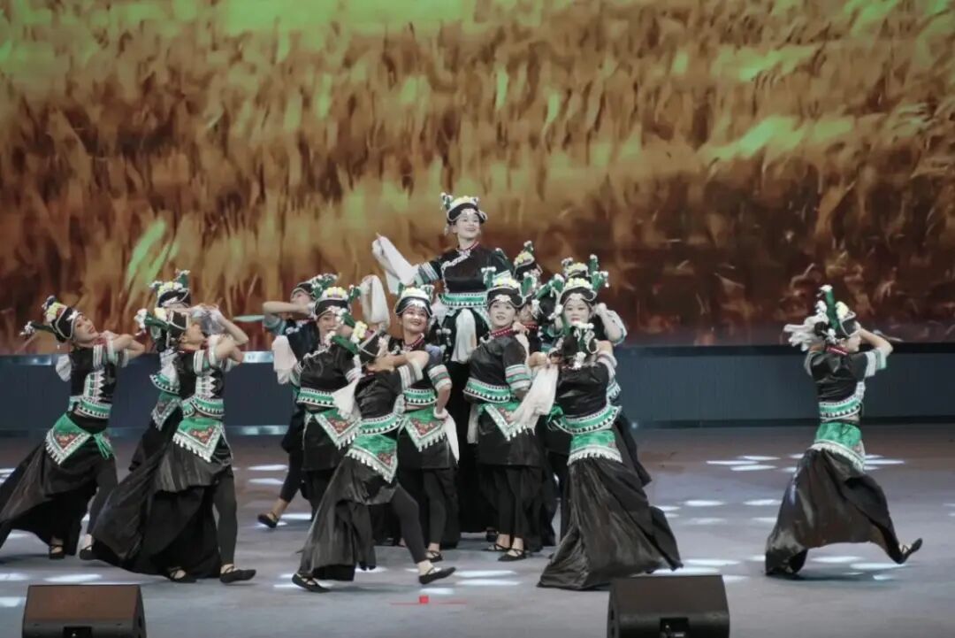 压轴舞蹈《铜鼓声声沐心田》更是根植壮族“铜鼓舞”非遗,用舞步再现壮家儿女四季劳作的场景,诠释“用双手耕耘希望”的质朴信仰。