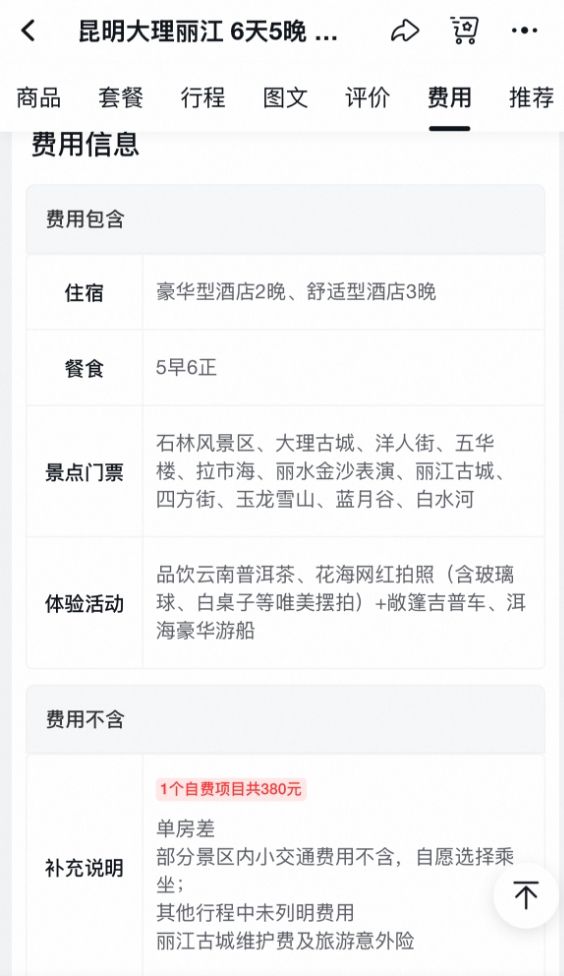 此行程包含住宿、餐饮、景区门票、云南省内交通等费用