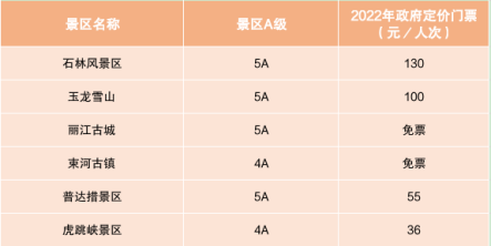 根据云南省《2025年旅行社云南旅游产品参考成本消费提示》,结合政府指导价及市场调节价A级景区名单计算得出: