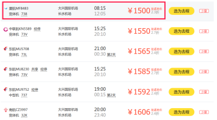 从行程看,北京至昆明出发时查询的往返机票价格最低为1500元。