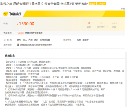 该旅游产品广告链接:彩云之旅 昆明大理丽江香格里拉 云南伊甸园 含机票8天7晚性价比