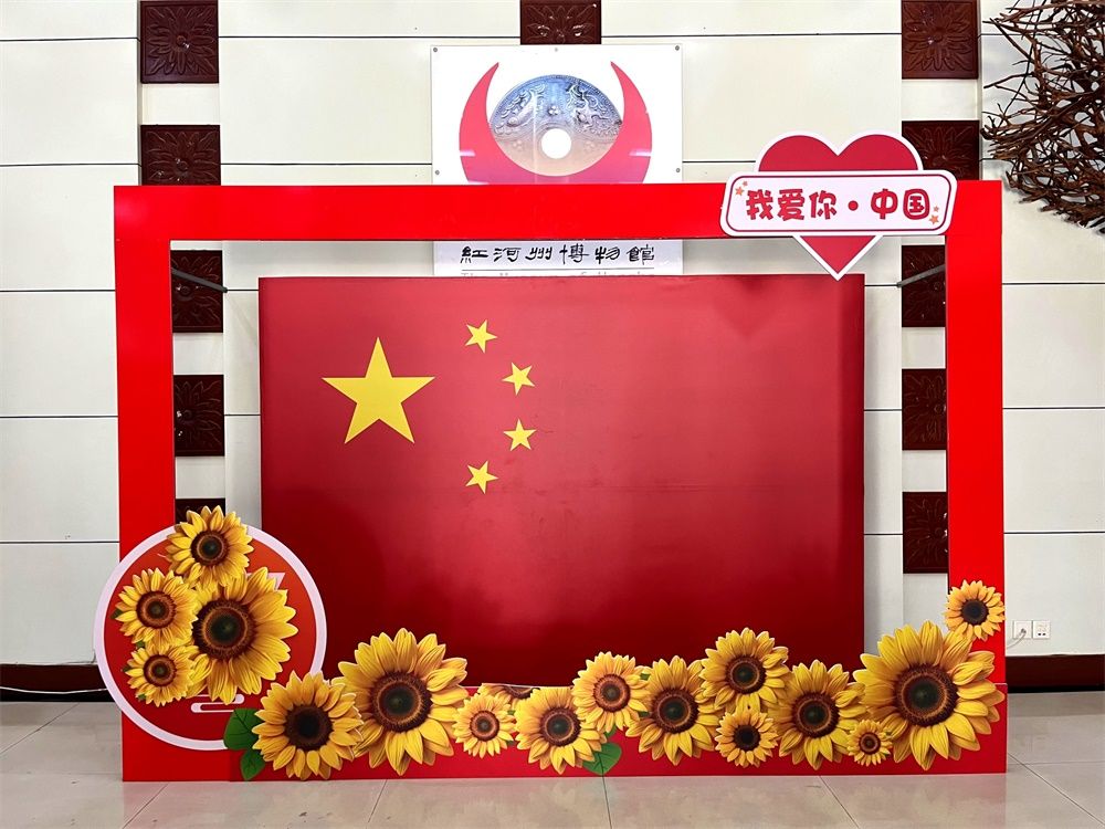 同时,红河州博物馆在展厅内特设“我爱你˙中国”主题拍照打卡点。这个国庆,诚邀您走进博物馆,触摸历史脉搏,感受时代新韵,与我们共度佳节、礼赞华夏!